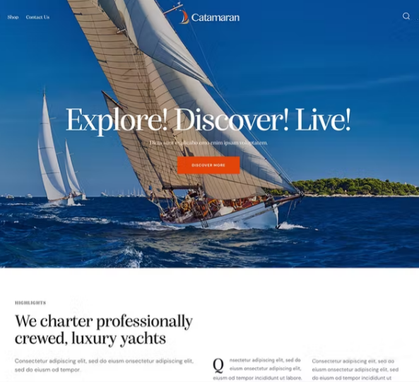 Katamaran, modern ve çekici bir premium WordPress Temasıdır. Yat ticareti ve tekne kiralama hizmetlerinin çevrimiçi sunumu için hazırlanmıştır. Tek bir yat & tekne kiralamak için kullanabilir veya herhangi bir satış / kiralama acentesi için kurumsal şirket sayfası olarak değiştirebilirsiniz.
