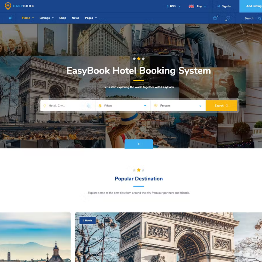 Temiz ve modern bir tasarımdan hoşlanıyorsanız EasyBook mükemmeldir. EasyBook a Otel Rezervasyon Dizini Listeleme WordPress Teması, yerel veya küresel bir dizin sitesi oluşturmanıza, yönetmenize ve para kazanmanıza yardımcı olur.