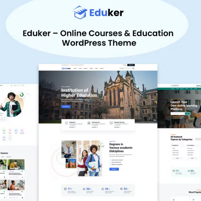 Eduker, her türden eğitim merkezi için mükemmel bir şekilde hazırlanmış minimal ve çağdaş bir WordPress temasıdır. Okul, Kolej, Üniversite veya Eğitim Merkeziniz düşünülerek tasarlanan bu nihai eğitim WordPress teması, eksiksiz bir çevrimiçi eğitim merkezi ve LMS için ihtiyacınız olan her şeyi içerir. Eduker, eğitim merkeziniz, çevrimiçi kurslarınız veya eğitim web siteniz için harika özelliklerle dolu olduğu için en popüler WordPress LMS eklentisi olan Tutor’u kullanır, ancak aynı zamanda kullanımı son derece kolaydır. Tutor LMS ile müfredatınızı, kurslarınızı, derslerinizi, kısa sınavlarınızı, ödeme entegrasyonunuzu ve daha fazlasını dahil edebilirsiniz…